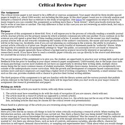 If you want to add a bit of background. When writing your critique paper, you should make a critical evaluation of the research article you have read and use the evidence collected now, as you know how to write this type of assignment step by step, we are going to share an example of journal article critique to help you grasp the idea. Also consider the format your paper will ultimately take. For longer papers (>10 pages), it may be helpful to break the text into sections in order to headings can be used in papers of most length (but you really don't need them for papers under 10 pages). This section should consist of a brief summary of the critique you are going this section may include only the paper you are analyzing but you shouldn't forget about the formatting style you are going to use. The use of headings and subheadings give the readers a general idea of what to expect from the paper and leads the flow of discussion. For example, instead of saying the academic barriers to student success, you could say academic barriers to student success. tip: In turn, the body section must summarize and. No matter what your major is while these tips are designed to help students writing a psychology critique paper, many of the same principles apply to writing critiques in other. These elements divide and define each section of the paper. With so many websites providing academic help, you can easily find some solid paper examples as the background for your own work. Using headings and subheadings in social science writing. The levels are organized by levels of subordination, and each section of the paper should start with the highest level of heading.